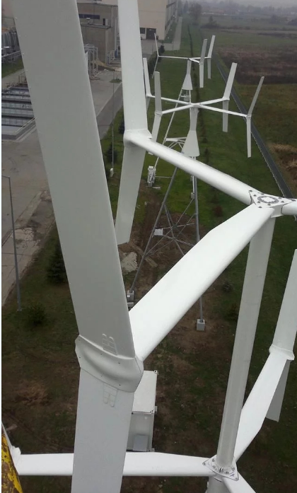 波兰一家叫A NEW INSTITUTE的公司研发出一种新型的风力发电机,该风机具有六个风力发电机叶片和两级的风轮,号称是世界上第一个商业化生产的该类型风电机组。
