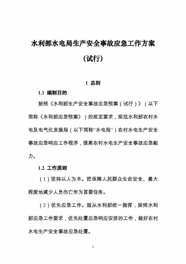 政策发布:水利部水电局生产安全事故应急工作方案(试行)