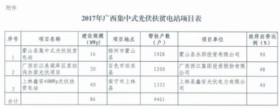 ■建设规模86MW 广西公布2017年集中式扶贫光伏电站项目(附表)