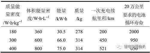 以北汽EV200(整备质量1.290t)为例,百公里耗电为14kWh,电池箱为220L,寿命要求为20万公里。电池的质量能量密度为180Wh kg-1时,EV200标准工况常温下续航里程为200km。