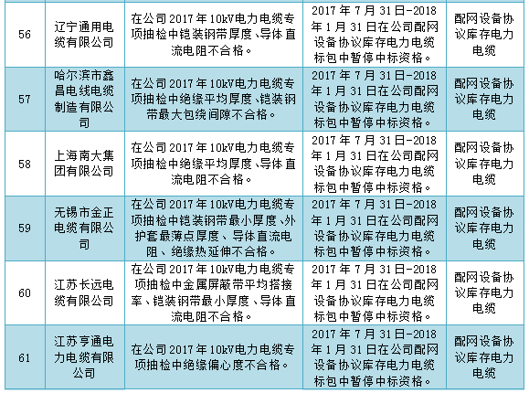 国家电网公司通报2017年9月供应商不良行为处理情况
